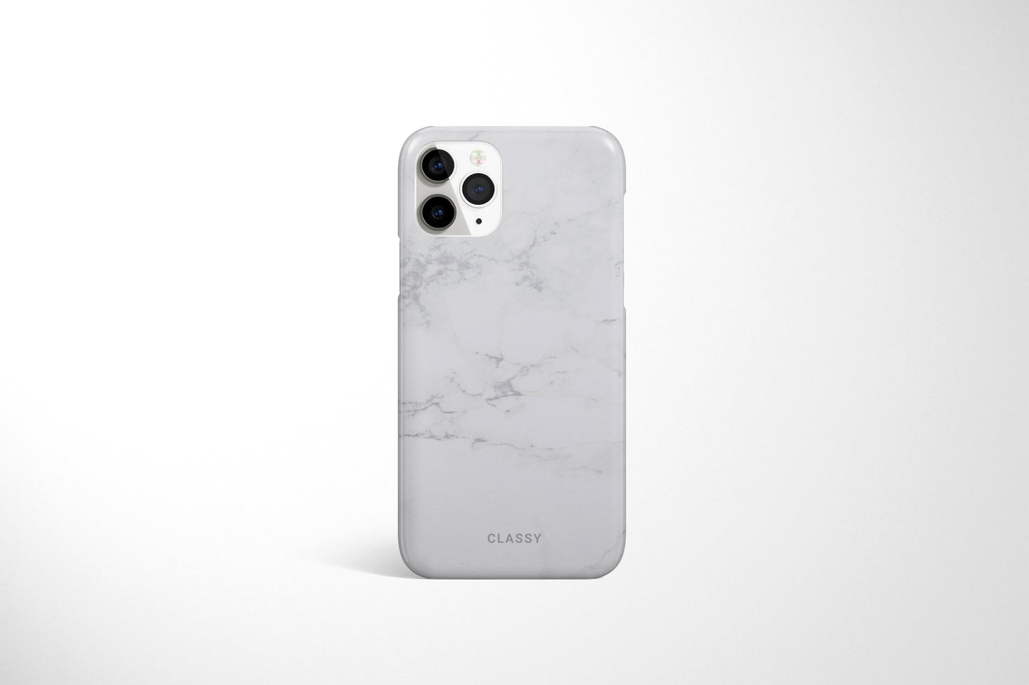 Our Snap phone case with a gray marble design is a quick and elegant solution for protecting your phone. With a durable construction and a raised bezel, this case is ultra-protective and great for everyday wear.